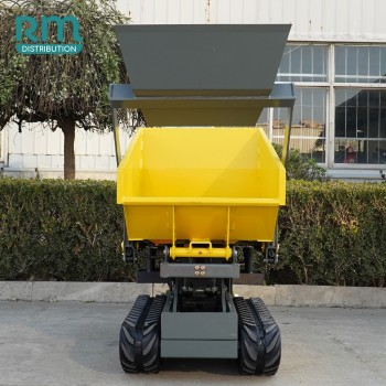 Brouette équipée d'un moteur pour faciliter le transport de charges lourdes. Elle est souvent utilisée dans les travaux de jardinage ou de construction pour déplacer des matériaux tels que du gravier ou des sacs de terre.
